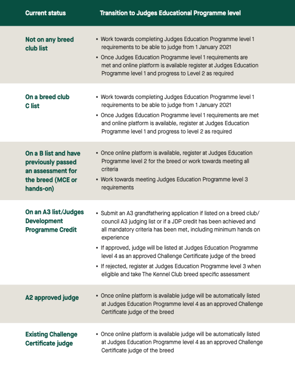 - Pass ‘Eye for a Dog’ assessment for judges progressing for a fourth or subsequent breed under JEP route